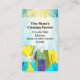Personalize este produto colorido de promocional a cores de cheio com o nome e os detalhes da sua empresa de limpeza ou limpeza. Apresenta aqua e raios azuis brilhantes de fundo claro com uma mão cor-de-luva amarela segurando duster de penas, um balde verde com pano e uma solução de spray azul.