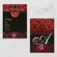 Cartão De Visita NEGRO VERMELHO DAMASK FLORAL MONOGRAM, Ruby Gemsto