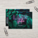 Adicione seu nome e informações de contato a este moderno estúdio de lash/cartão de visita de extensão de pestanas, com folhagem verde-escura tropical e uma moldura azul-da-noite. As palavras "Lash" e "studio" estão em tipografia neon roxa e rosa com seu nome embaixo, e seus detalhes de contato na parte traseira do cartão. Há um código QR também, onde você pode adicionar o URL da mídia social. Entre em contato com o designer se você quiser uma cor diferente no texto neon.