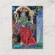 Pintura colorida, vibrante e contemporânea em cores dourada, azul, vermelha, verde, castanha. Um misterioso feiticeiro hipnótico com fantasias elegantes de veludo vermelho segurando uma esfera mágica sentada num trono gótico com gargantas e coruja. Ambiente é surreal, fantástico, alquímico onde você vê um testículo é bebendo de uma xícara, um monge templar voando sobre um sapo, bolhas transparentes, paisagens de fantasia com fogo infernal, céu azul cósmico com estrelas, montanhas do céu, árvores .Egg Tempera em um painel de madeira com folha de ouro. 1989, Miniatura Feita com técnicas pictoriais de 1300 por Alessandro Lumini (c) É também uma bela design de fantasia para Natal, Férias, Aniversário, Dia da Véspera de Ano Novo, Mardi Gras e Saudações de Carnaval.