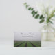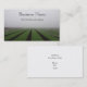 Um cartão de visita imprimiu com uma foto de um campo da alface que está sendo irrigado em uma manhã nevoenta. Bom para algum tipo de fazenda ou de negócio agrícola.