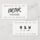 Cartão De Visita Nome Branco preto moderno Data Bebida Bebida Casei