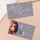 Um simples artista moderno e ousado e cartão de visita de cabeleireiro com nome sobredimensionado na frente, em uma fonte e foto de estilo manuscrito, código qr e mídia social no verso em azul empoeirado. Todas as cores são editáveis.