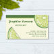 A ilustração de Destei das frutas de limões em fatias. O topo tem uma borda verde decorativa. Há também áreas de texto personalizáveis para nome, profissão e informações de contato.