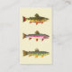 Este design apresenta a Brook Trout, salvelinus fontinalis; Truta Arco-Íris, oncorhynchus mykiss; e o "Brown Trout", "Salmo Trutta" em toda a sua glória. A arte é tirada de três pinturas originais de aquarela pelo Sr. Trout Whiskers e mostra todas as lindas cores e padrões desses peixes maravilhosos. Perfeito para fãs de pesca de moscas e ictiologia. Personalize o verso com suas próprias informações personalizadas. Este mesmo design de 3 peixes também está disponível em centenas de outros produtos.