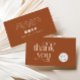 Cartão de inserção simples para pequenas empresas com um texto retrorreflector giro que diz "obrigado você". Você pode adicionar seu logotipo e uma mensagem simples no verso, juntamente com suas mídias sociais e informações do site. A cor está em terracota.