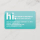 Faça uma primeira impressão de um excelente e apresente-se a clientes potenciais com nossos cartões de visitas "oi, meu nome é". O design apresenta "hi" num design tipográfico moderno com uma sombra diagonal de texto. O gradiente de na moda teal acrescenta um olhar ousado moderno. Personalize com seu nome, título e informações de contato. O reverso é projetado em estilo mínimo limpo com monograma personalizado e identificador de mídia social.