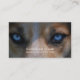 Este lobo tem olhos azuis intensos olhando para você. A foto é aproximada em seu rosto, acrescentando uma sensação de forte e aguda concentração. Seus belos olhos estão cercados por pele branca e castanha macia.