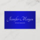 A imagem apresenta um ombre azul médio a escuro. Nome ou empresa em uma fonte de caligrafia moderna glamourosa, embora você possa mudar esse estilo. O título do trabalho e as informações do contrato criados usando Bonés Bloquear ... todos os bonés. Há um espaçamento de caracteres aplicado que é personalizável.
