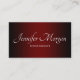 A imagem apresenta um mbre ou gradiente preto e vermelho escuro ou burgundy. Nome ou negócio numa fonte de caligrafia moderna glamourosa, embora você possa mudar esse estilo. O título do trabalho e as informações do contrato criados usando Bonés Bloquear ... todos os bonés. Há um espaçamento de caracteres aplicado que é personalizável. Para empresários on-line, personalize e adicione mais ou menos do que número de telefone e mídia social e/ou site. Para os profissionais, há espaço para um endereço físico e outras informações.