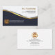 No verso, em um cobrir branco, os detalhes estão no centro. Na parte superior são o logotipo familiar do ouro, os detalhes do contato e duas opções do slogan para que você publique seu negócio.