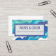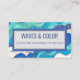 Ondas e cartão de visita de cor. Caneta e ondas de tinta em tons azuis. Personalize seu texto.