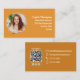 Make a bold statement with this modern professional business card in a vibrant orange minimalist design, perfect for independent freelancers. Featuring your photo, QR code, and social media links, it makes networking effortless and stylish. The simple, clean layout highlights your business website and contact details, creating a confident, contemporary look that stands out in any industry.