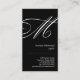 A letra "M" rendida em um roteiro ornamentado descarrega este cartão de visita preto que faz um à moda, versátil procura um cabeleireiro, um consultante da imagem, um treinador da vida, ou um estilista entre muitos outro. Não gostam do fundo preto? Escolha "personalizam-no" opção do botão e mudam-nos a cor do fundo como desejada. Disponível em monogramas alternativos.