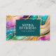 Cartão de visita, elegante e moderno, Ouro Glitter Glitter Grelha Arco-Íris Agata Glamor, este design apresenta uma fonte de estilo clássico de assinatura definida contra um belo círculo vicioso dourado moderno e o arco-íris glamouroso agate com arestas brilhadas pelo ouro. Perfeito para um salão de beleza, cabeleireiro, maquiador ou cosmetólogo e muito mais.