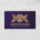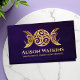 Cartão de visita elegante com a Lua Tripla, destacada com espirais triskele ouro contra fundo roxo profundo. Simbolizando a sabedoria lunar, o equilíbrio e o eterno fluxo de energia, este design é adequado para místicos, psíquicos e profissionais espirituais. Personalize com suas próprias informações para uma aparência elegante e significativa.