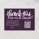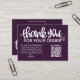 Expresse sua gratidão com nosso cliente roxo Obrigado Pacote Inserir Cupão de Código QR cartão de visita. Esta placa cuidadosamente projetada apresenta um código QR que leva seus clientes a um desconto exclusivo ou oferta especial, mostrando apreço pela sua lealdade. Faça uma impressão duradoura e fortaleça seus relacionamentos com o cliente com esse gesto personalizado e na moda.