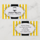 As listras amarelas e brancas combinadas com os redemoinhos bonito pretos e um desenho de um bolo com um arco nele fazem a isto um cartão de visita chique para um design de negócio da padaria do bolo do cupcake ou do desenhista por Elke Clarke ©2011. Customizável com sua cor da informação e do fundo.