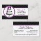 design 2012 da socialite do ©. Nosso design de cartão de visita da padaria do bolo do gourmet tem um bolo elegante em um suporte dentro de um círculo do laço. Um cartão de visita perfeito para um desenhista do negócio ou do bolo da padaria. Personalize este cartão de visita do bolo, do laço e do damasco com sua informação.
