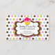 design 2010 da socialite do ©. Design colorido do cupcake, com área de texto da bandeira da nuvem e fundo das bolinhas, cartão de visita da padaria pronto para que você personalize para seu negócio. O estilo de pia batismal pode ser mudado. AJUDA da necessidade com personalização? Por favor não hesite contactar-me.