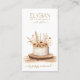 Esta pastelaria de padaria cartão de visita apresenta uma elegante ilustração aquosa de um bolo ao estilo boho em bege mole e ouro. As flores silvestres deliciadas adornam o topo, acrescentando um toque de espiões ao design e refletindo sua arte de assar, criando uma vibração artística da terra. O slogan do padeiro é: feito com amor.
