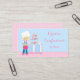 Um cartão de visita doce para um negócio da padaria ou da casa-padaria. As características de design uma menina loura com o chapéu do cozinheiro chefe que guardara um bolo bonito. Há uma mesa com cupcakes em uma bandeja três-estratificado e o fundo é brandamente azul com uma beira cor-de-rosa do guingão, que repita na parte traseira. Alguns gráficos por etsy.com/shop/Prettygrafikdesign.