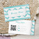 Cartão De Visita Padrão azul de Boho Código QR calmo costeiro