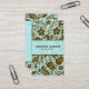 Flores retro castanhas e azuis-claras, espirais e design de folhas. Cartão de visita floral retro elegante. Este é um modelo de cartão de negócios totalmente personalizável.