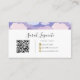Mergulhe em um reino sonhador com essas nuvens pastéis e o padrão das estrelas, onde nuvens pastéis macios e estrelas amarelas estão dispostas em um céu roxo. Com uma paleta de lavanda, azul-bebê e cor-de-rosa delicado, este padrão é um design aconchegante e calmante. O design é repetido na parte traseira da placa. A frente apresenta uma fonte de script cursivo personalizável para seu nome em preto e um local onde você pode adicionar seu título de trabalho. A parte traseira apresenta ícones de contato em uma textura de folha de ouro e, ao clicar em "personalizar", você pode mover cada ícone individualmente. Esta placa também apresenta um novo modelo de código QR, no qual você pode adicionar seu próprio código QR para vincular ao seu site a sua página de mim, linktree, google list ou qualquer outro lugar para onde você queira direcionar seus novos clientes. Este cartão de visita é uma maneira muito chique e elegante de exibir suas informações comerciais, com seu elegante design floral e uma paleta brilhante e moderna.