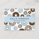 Cartões de visitas bonitos, divertidos e adoráveis com rosquinhas azuis e castanhas. Design moderno e moderno, perfeito para compradas de bolo, compradas de pastelaria, bares de rosquinha, padarias e bares de sobremesa.