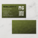 Padrão geométrico do gradiente verde do exército, QR code Monograma Cartão de visita. Personalize-o com seu código QR, monograma, ocupação, contatos e mais informações comerciais. Malha geométrica do triângulo moderno elegante com gradiente verde-verde do Exército escuro.