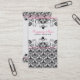 Preto e branco com toque em tons cor-de-rosa vintage damascos florais e modelo de cartão de negócios padrão de espiral totalmente personalizável. Disponível em outros produtos.