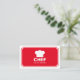 Um modelo de cartão de negócios na moda projetado para um café, restaurante ou um compro de café em mente. A placa tem um painel grande, enquadrado na parte frontal, contendo o logotipo/símbolo do chapéu genérico do chef, com o nome da empresa e o tipo de negócio abaixo. O verso da placa tem um cabeçalho de estilo de fita simples com o nome da empresa e o tipo de negócio repetidos no cabeçalho. A seção inferior tem o endereço na parte superior com horários de abertura no centro, com o número de telefone abaixo e os endereços de e-mail e de site na parte inferior. Este modelo permite muito espaço para nomes mais longos fazer fácil de personalizar com seus detalhes, mas também pode ser personalizado adicionalmente.