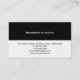 Simples e moderno é o olhar neste cartão de visita. Um negócio ou um nome pessoal são dominante na parte dianteira do cartão com a informações de contacto principal, um número de telefone ou Web site, batendo fora do painel preto rico abaixo. Adicione uma descrição dos serviços no reverso na parte superior com toda a impressão da informações de contacto abaixo. Disponível em cores alternativas.