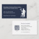 A modern business card designed for painters and decorators. With a navy blue background on the front and a white silhouette of a painter on steps holding a paint roller, easily customize the white typography with your name and contact details. The reverse of the card has a plain white background and space to list your services, along with a QR code - perfect for linking to reviews, your portfolio or website.