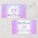 Apresente seu melhor eu aos seus clientes, com esses cartões de visitas elegantes, sofisticados, simples e modernos de nomes personalizados. Um bolo azul esparso, roxo, tipografia escrita à mão e pingos de brilho sobrepõem-se a um fundo azul-roxo falso metálico. Personalize com seu nome de cheio e negócios na frente. Preencha o verso com seus números de telefone, endereço, email, site e contas de mídia social. Faz uma declaração chic, profissional e na moda onde quer que você vá. Basta digitar seu nome, nome comercial e todas as suas informações adicionais na seção "Personalizar este Modelo" e você pode personalizar facilmente este cartão de visita. Por favor, me mande mensagens com quaisquer perguntas ou solicitações.