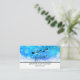 Cartões de visitas de Natal com uma silhueta preta de Papais noeis cavalgando em seu trenó sendo puxados por suas renas voando pelo céu. Acredite que está escrito em uma fonte de script de tendência. O fundo é um design de floco de neve gelado azul gelado.
