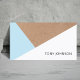 Modelo de cartão de negócios moderno elegante e totalmente personalizável com fundo de papel kraft impresso e triângulos azuis/brancos. Elegante e legal design. Perfeito para designer de interiores, designer, profissionais relacionados à decoração de casas, consultor e muito mais.