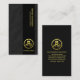 No verso, em uma cobrir escura, no topo está o logotipo dourado seguido do seu nome prestigioso, dos seus dados de contato e de uma opção de slogan.