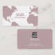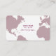 Um bom cartão de visita para um guia turístico ou um agente viagem com a imagem de um mapa roxo cinza do mundo ao fundo.