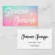 Este design de cartão de visita divertido e moderno apresenta um fundo colorido do arco-íris pastel e um roteiro de caligrafia moderna na frente. No verso há um fundo branco com a escrita preta e a simples tipografia. As cores do tipo podem ser personalizadas usando a ferramenta de edição. Este design faz uma declaração chic e uma impressão fabulosa para o seu negócio em crescimento. Esta design seria perfeita para muitos tipos de negócios criativos porque é simples, mas divertida e moderna.