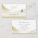 Cartão De Visita Pastel de Dourado Branco com Monograma e Diamante