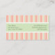 Um cartão de visita doce com fita em um padrão listrado. A combinação de pêssego pastel e listras verdes cria um padrão caprichoso e elegante, evocando uma sensação de brincadeira e sofisticação que se adapta perfeitamente a uma padaria ou a uma loja de roupas para crianças.