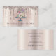 Cartão de visita moderno, moderno da padaria. Design apresenta fundo de folha falsa de champanhe e gotas de brilho, ícone de bolo e brilho brilhante. Personalize com um nome na frente e entre em contato com os detalhes no verso.