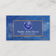 Design apresenta um placar retangular azul encapsulado com um quadro dourado. Tudo isso em um cobrir azul de água. Dentro do cartaz azul você tem um logotipo prateado de peixe Ichthus que você pode usar. Logo abaixo, está seu nome prestigioso e cargo. No verso, em um cobrir azul, o logotipo Ichthus está no topo, seguido do nome da organização, seus dados de contato e uma opção de legenda de slogan. #cristão #religioso #pastor #cristão #igreja #reverendo #oceano #ichthus #peixe #zazzlemade