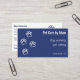 Quatro estampas de patas ambulantes representam o seu cão andando ou sentando-se de estimação, ou o negócio de creche de cães num estilo moderno e minimalista. A frente do cartão de visita é o Azul da Meia-noite e o Azul Escuro e apresenta contornos de pata branca e texto branco para o nome, serviços e localização da sua empresa. A parte traseira da placa é branca com texto azul escuro e contornos de pata azul escuro. Ele apresenta seu nome e informações de contato - telefone, email e site. Linhas adicionais para obter mais detalhes sobre os serviços, bem como uma mensagem ou um slogan. Uma procura profissional moderna por um negócio de serviços para animais de estimação que também mostra o quanto você se importa.