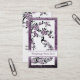 O pavão preto, roxo e cerejeira floresce um design de cartão de visita personalizado, com uma silhueta roxa preta de um pavão de pavão e um galho de cereja - sakura - com flores adoráveis com efeito de textura esmagada em fundo branco e uma borda negra à sua volta. Um elegante design modelo floral com um talento asiático oriental. Este design feminino é totalmente personalizável. Excelentes para uso pessoal ou profissional.
