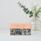 Praia rocha em laranja, pêssego e tons azuis. Na frente, você pode adicionar o nome da sua empresa e a parte de trás em cor de pêssego com um código QR personalizável e um texto.