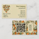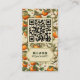 Ilustração de simulações. Frutas, flores e folhas em ramos. Cor de fundo personalizada. Muitos campos de texto personalizáveis no lado frontal. Padrão constante, ícones de ID social e código QR no verso.
