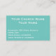 Personalize este cartão com as informações de contato da Igreja ou as informações do Pastor. Você pode personalizar todo o texto branco sobre este moderno e minimalista cartão verde-turquesa aqua. Você pode adicionar o nome da sua igreja ou organização em um texto claro e simples. Você pode adicionar seu nome, endereço, e-mail e site em script claro. O verso é uma turquesa minimalista sólida com escrita branca onde você pode adicionar uma Bíblia Verso, palavra ou esperança, mensagem de salvação ou outra informação para a reunião da igreja ou evento especial.